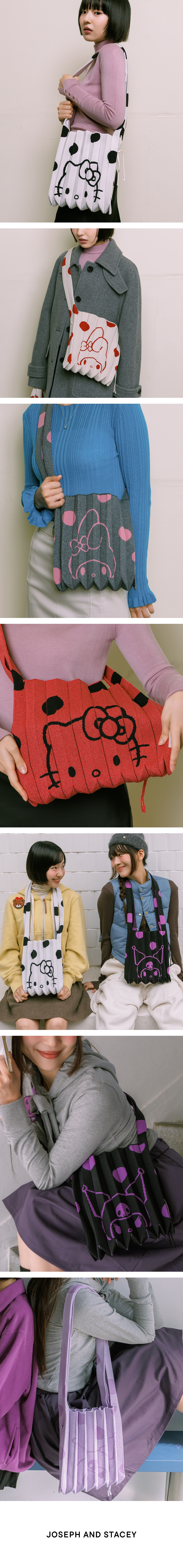 Joseph&Stacey Lucky Pleats Knit Crossbody M Dot My Melody Midnight Grey