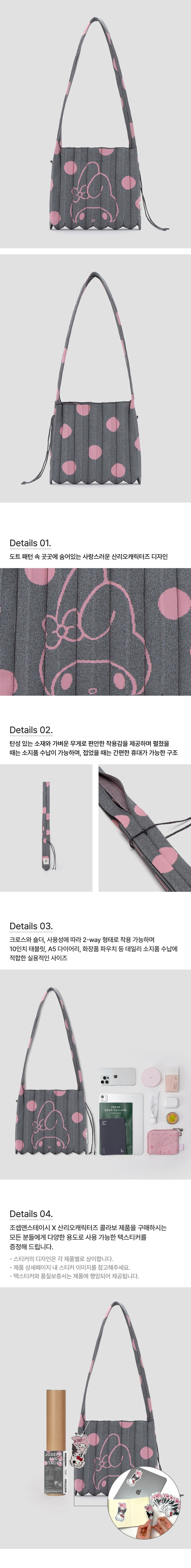 조셉앤스테이시 럭키 플리츠 니트 크로스바디 미디움 도트 마이멜로디 미드나잇 차콜