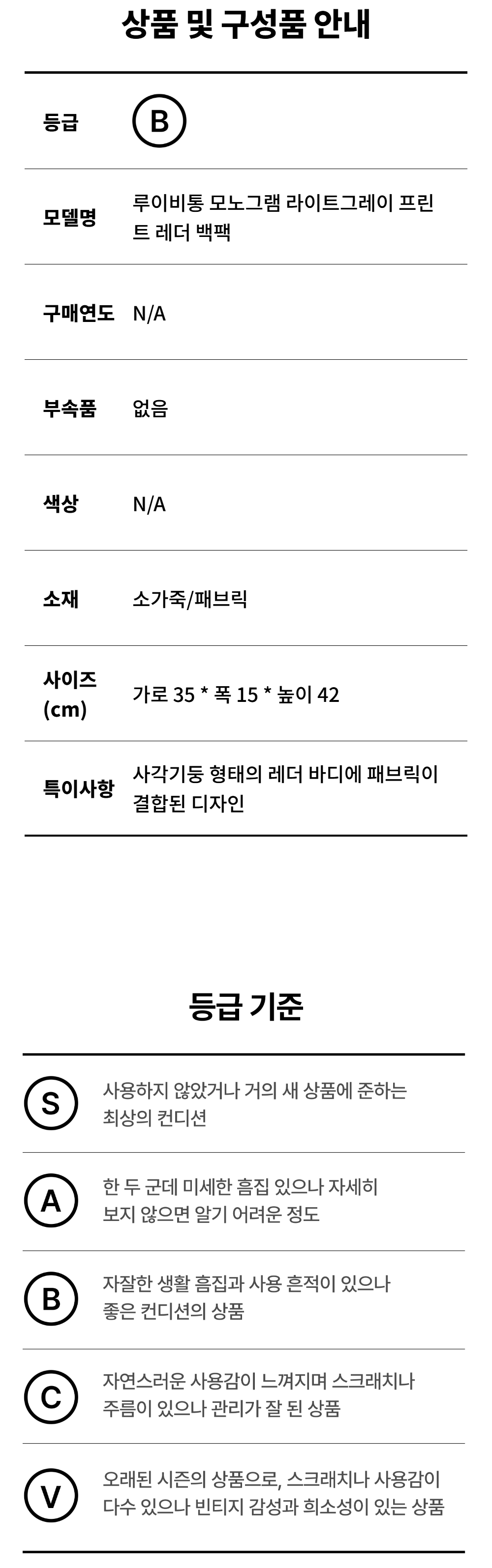 루이비통 모노그램 라이트그레이 프린트 레더 백팩