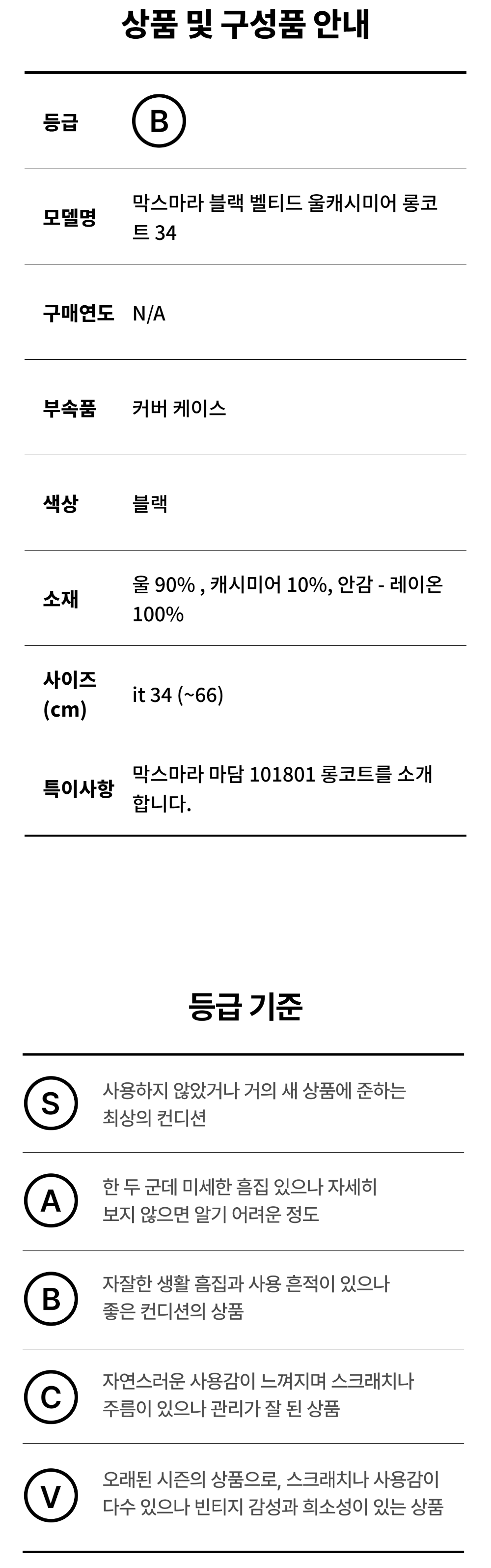 막스마라 마담 블랙 벨티드 울캐시미어 롱코트 34
