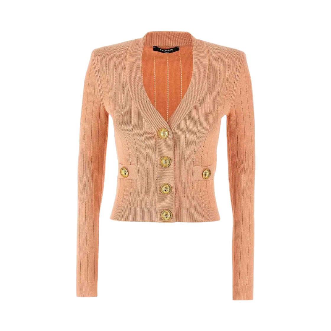 (W) Balmain Gold Button V-Neck Cardigan Pink