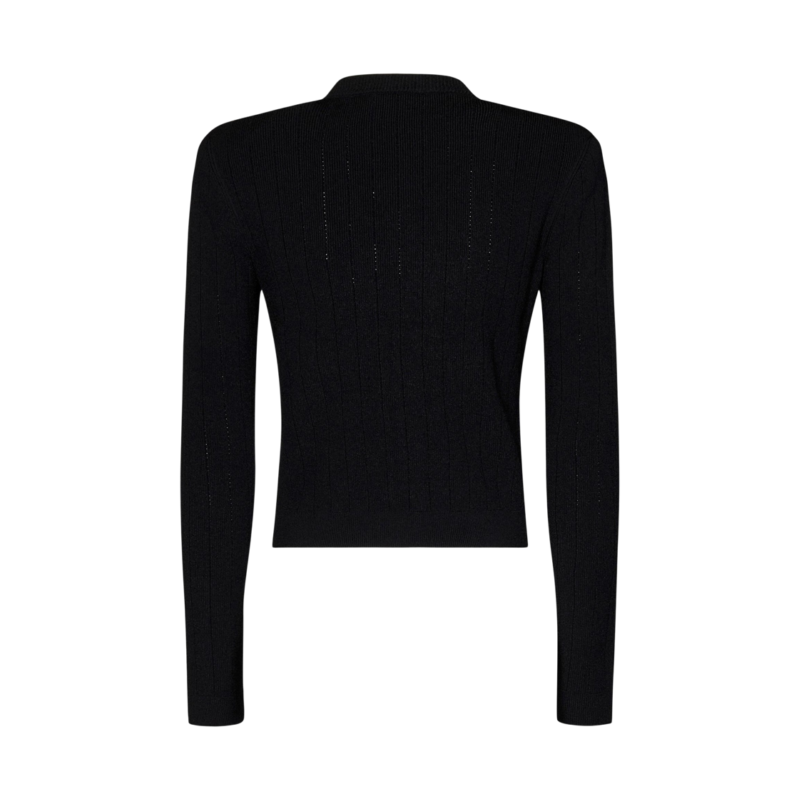 (W) Balmain Gold Button V-Neck Cardigan Black