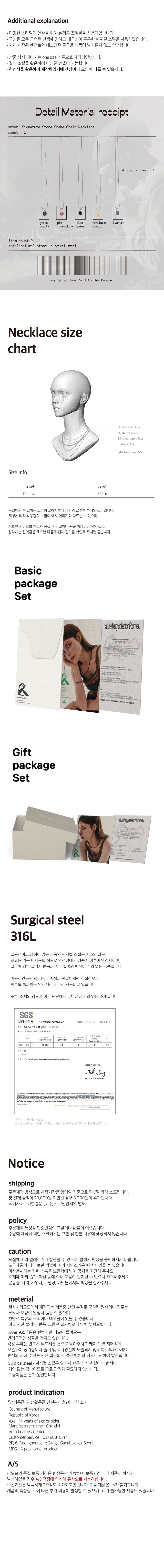 리오므 시그니처 스톤 스네이크 체인 목걸이 블랙