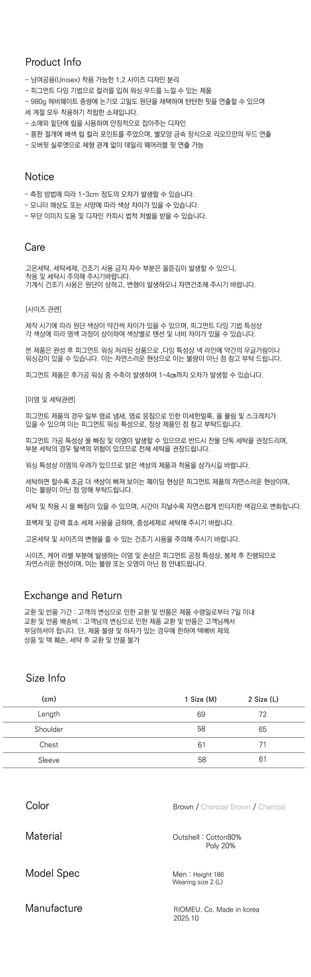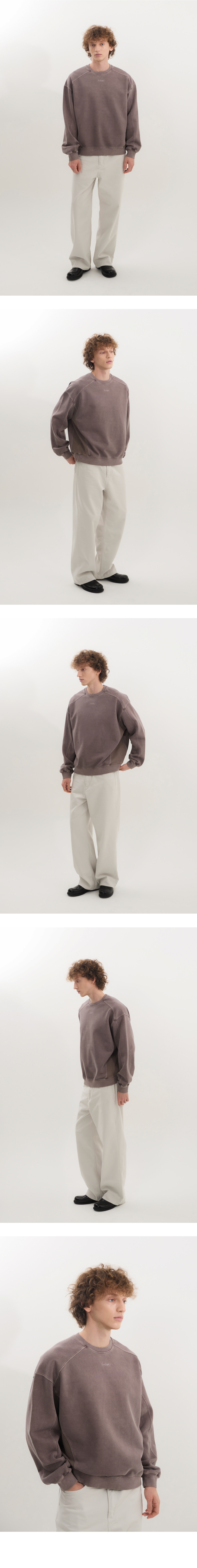 리오므 언발란스 절개 피그먼트 헤비 스웻셔츠 브라운