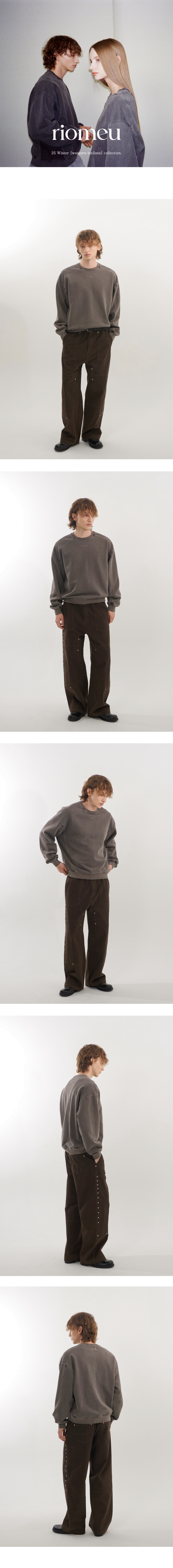 리오므 언발란스 절개 피그먼트 헤비 스웻셔츠 차콜브라운