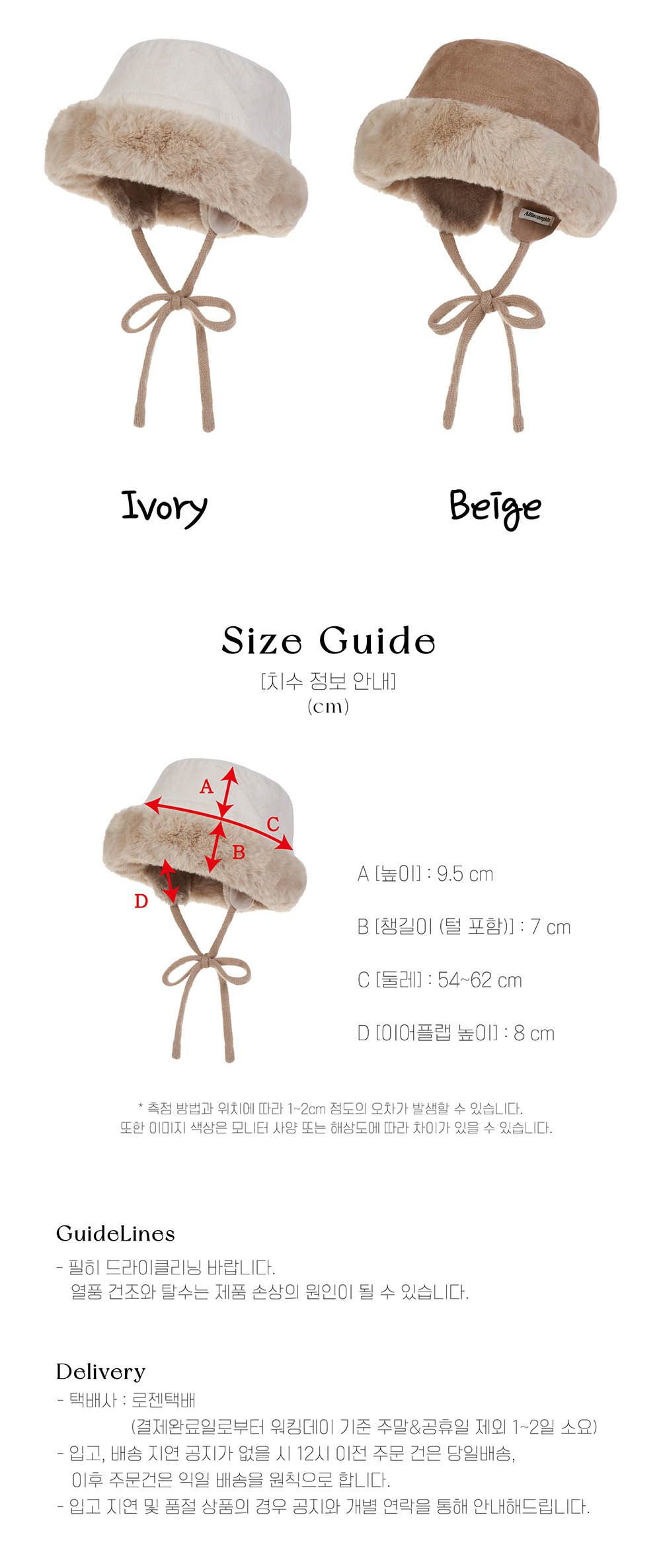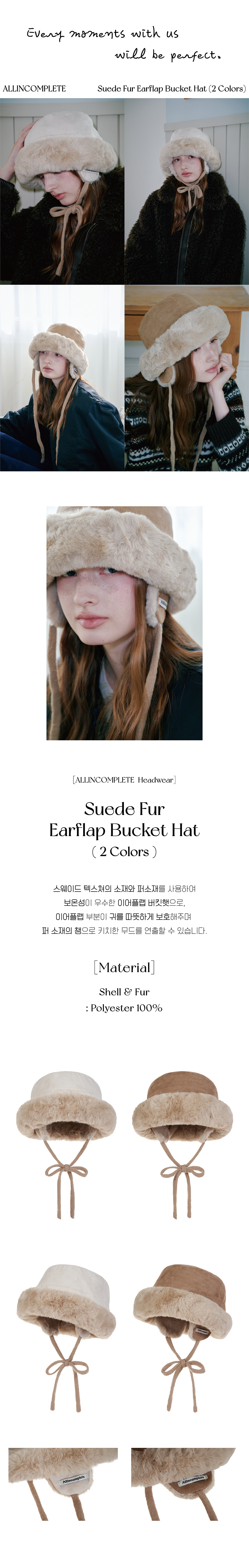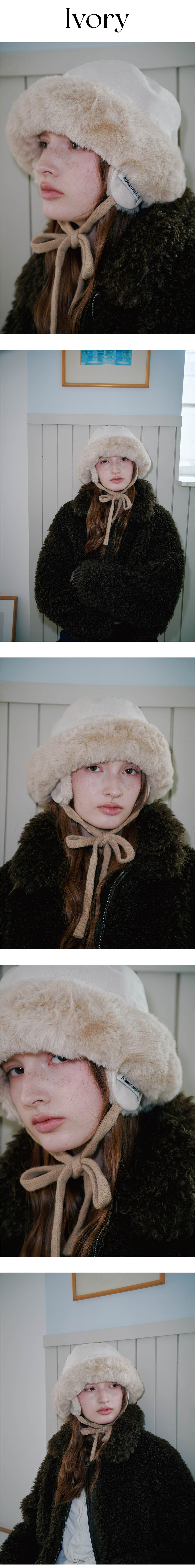 올인컴플리트 스웨이드 퍼 이어플랩 버킷햇 아이보리