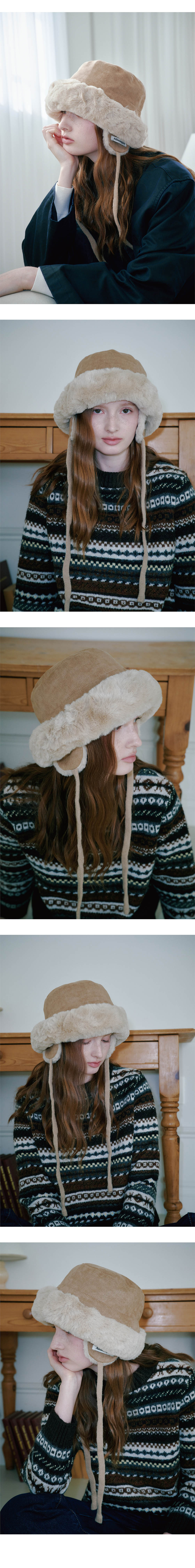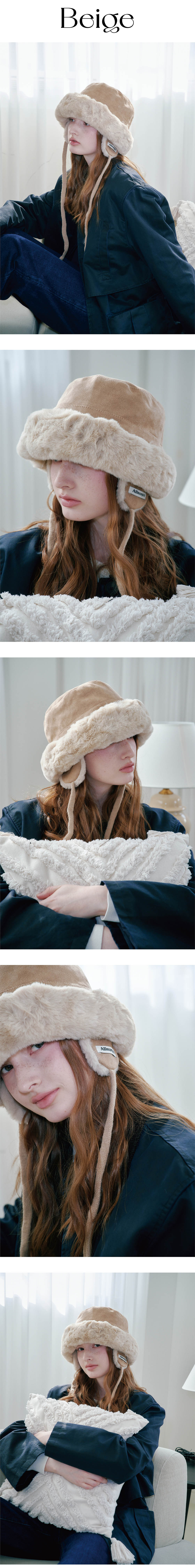 올인컴플리트 스웨이드 퍼 이어플랩 버킷햇 베이지