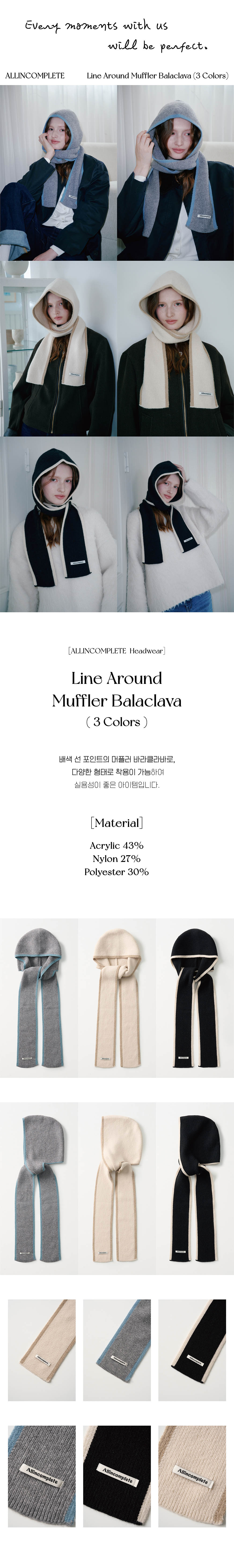 올인컴플리트 라인 어라운드 머플러 바라클라바 아이보리