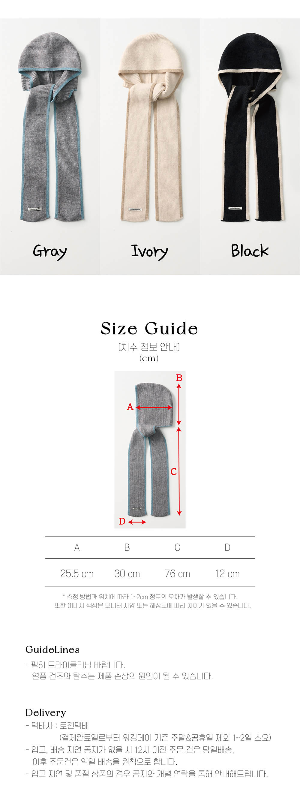 올인컴플리트 라인 어라운드 머플러 바라클라바 블랙
