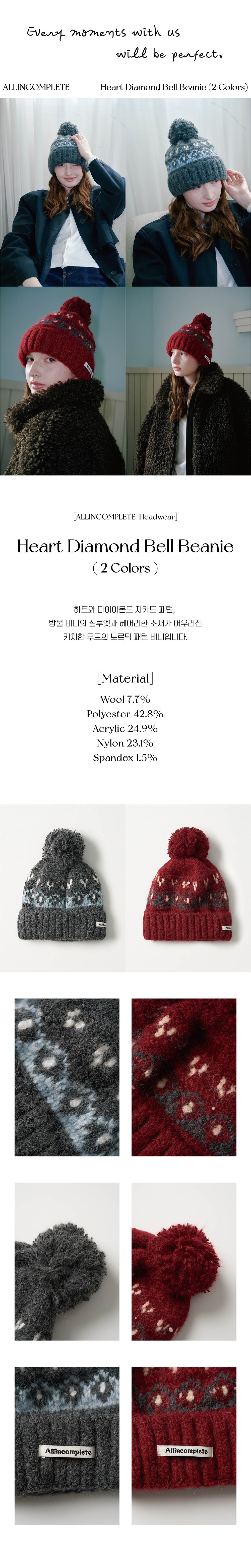 올인컴플리트 하트 다이아몬드 벨 비니 그레이