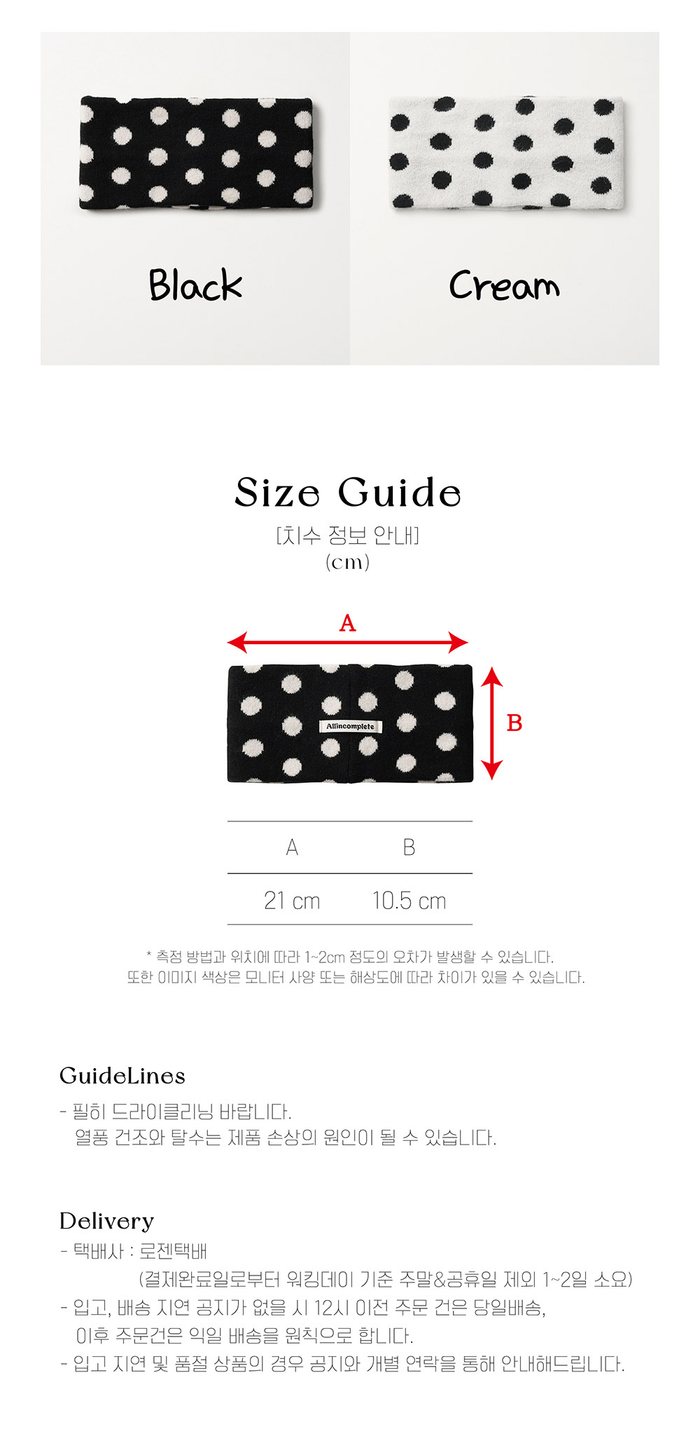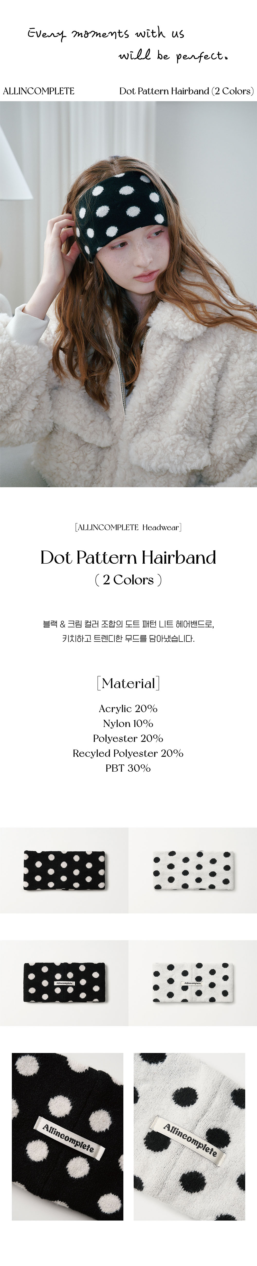 올인컴플리트 도트 패턴 헤어밴드 블랙