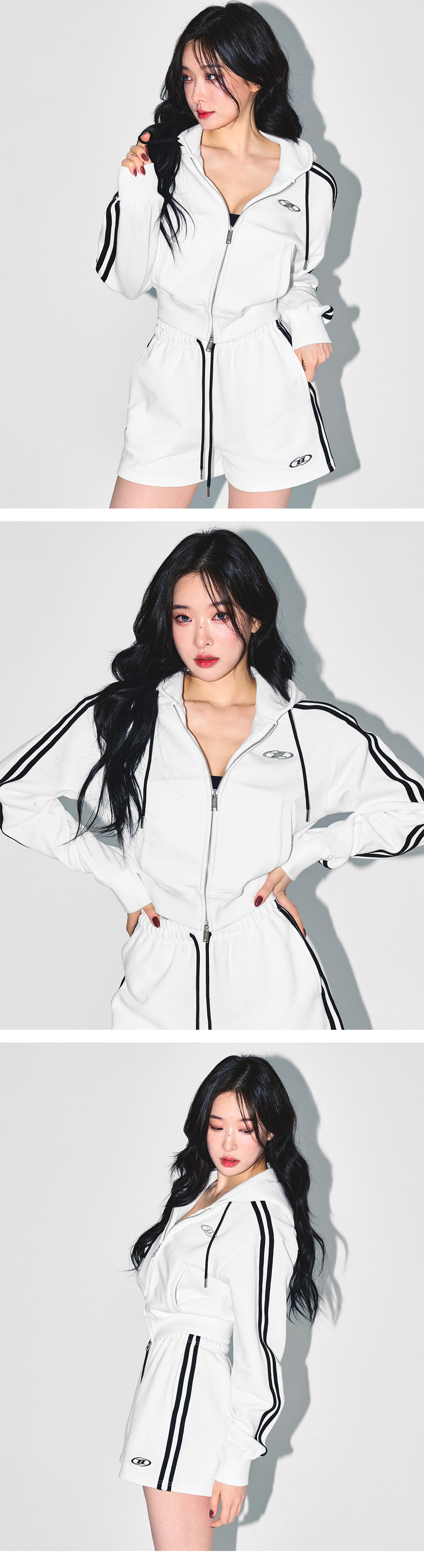 BORN TO WIN W Chrome B Track Line Crop Hoodie Zip-Up White