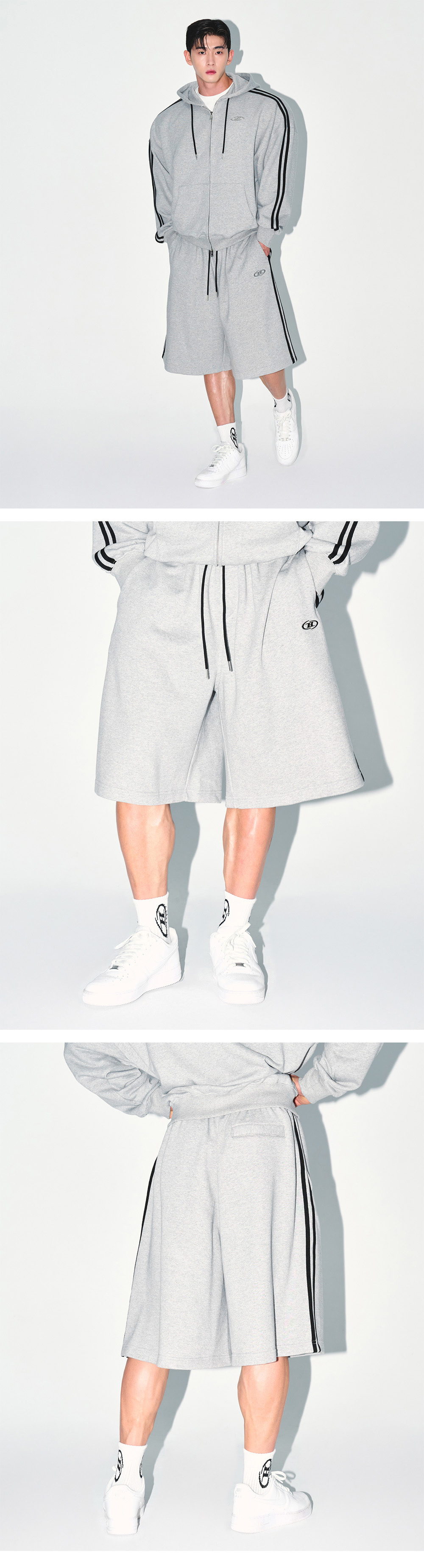 BORN TO WIN Chrome B Track Line Bermuda Pants Melange Grey