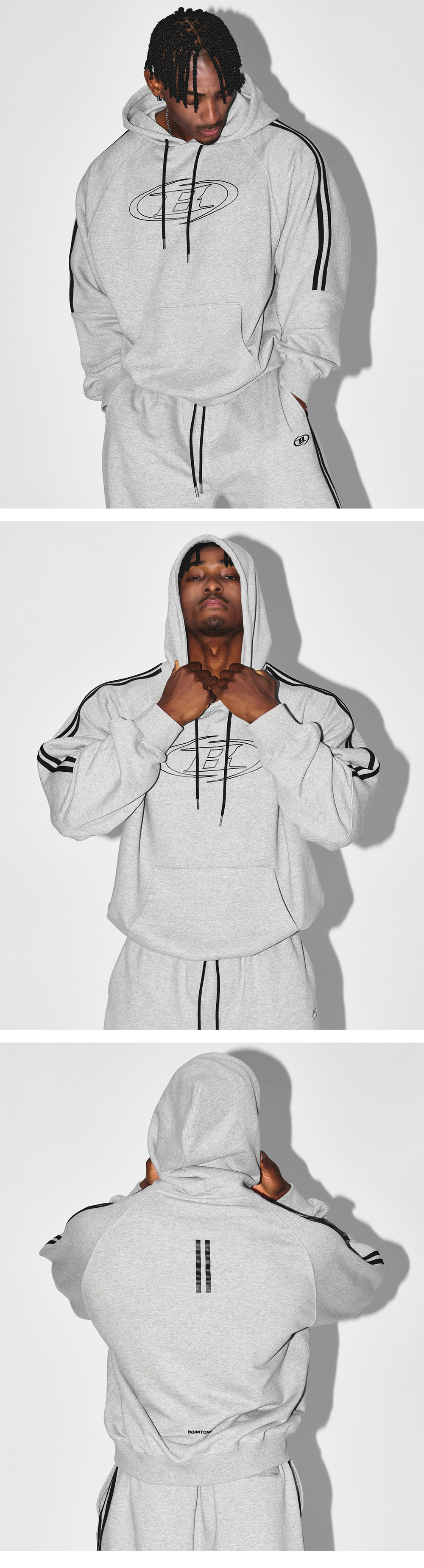 BORN TO WIN Stroke B Track Line Hoodie Melange Grey