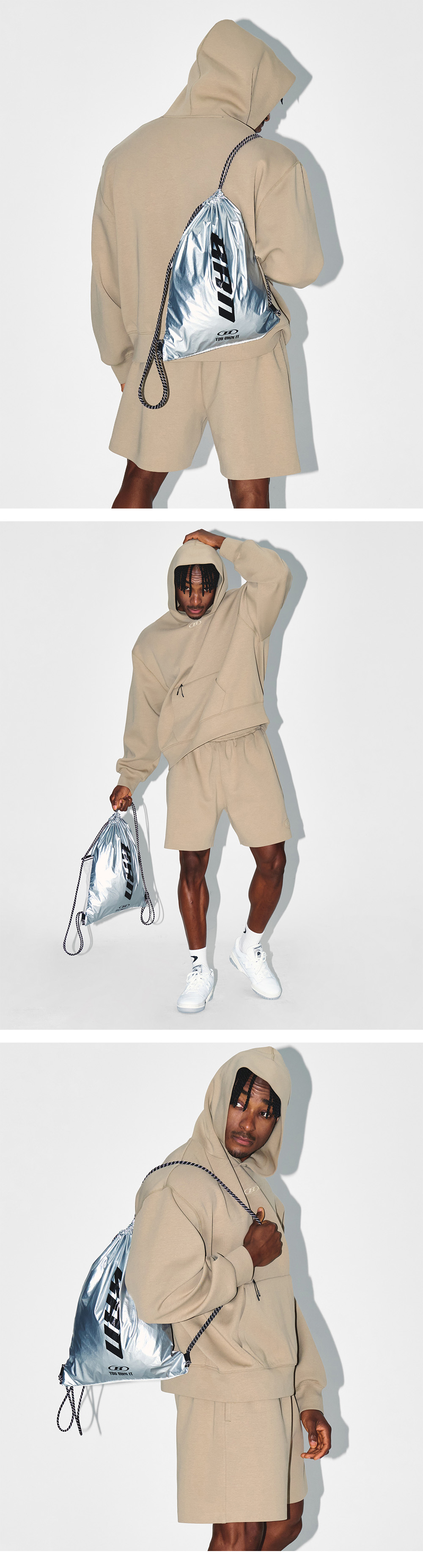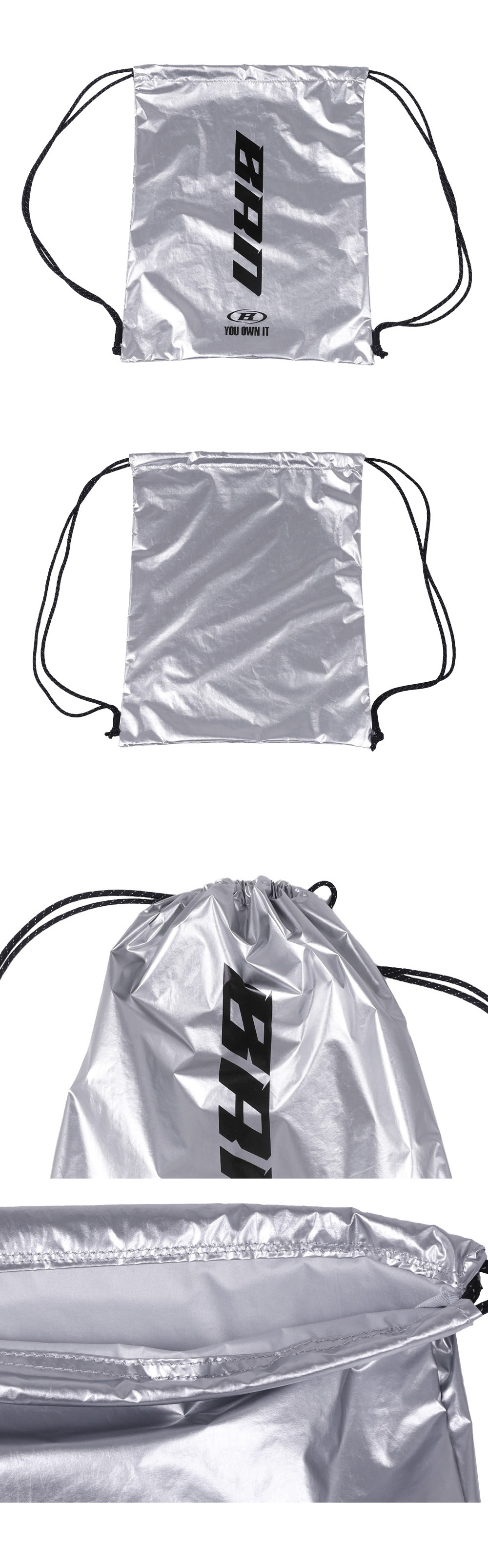 [DETAILS] *글로시 드로스트링 짐 색 - 실버 코팅 나일론 원단 - BRN 로고 프린팅 - 3M 리플렉티브 스트링 Material : Nylon 100% (Polyurethane Coated) [SIZE GUIDE] (Unit : cm) F : Width 34.5 / Height 44.5 Fitting : EM F Size, 182cm, 87kg