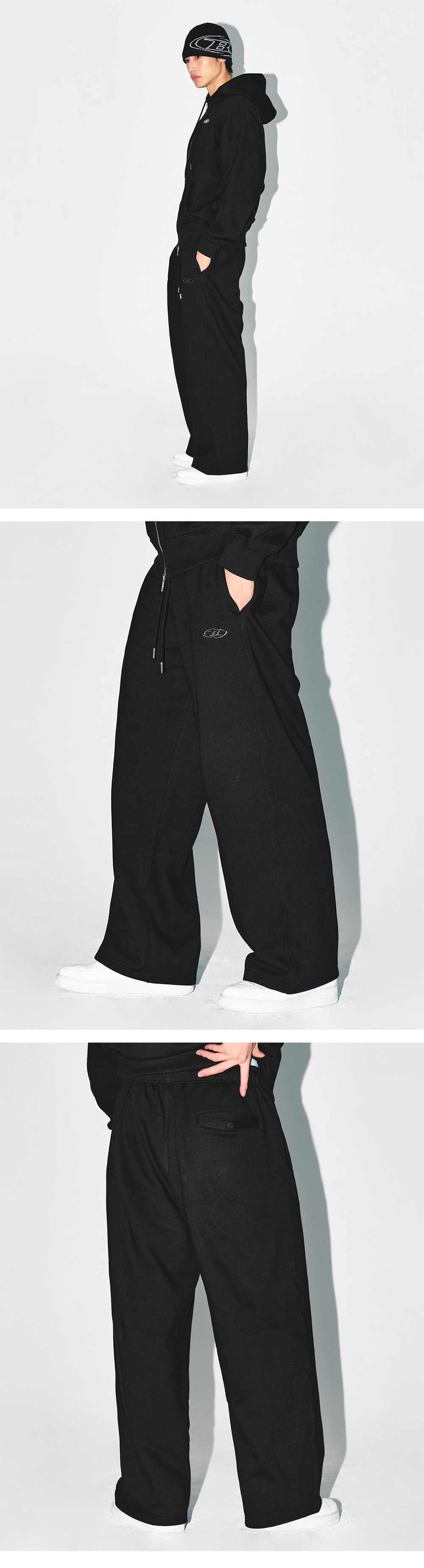 본투윈 크롬 B 플리스 세미 와이드 팬츠 블랙