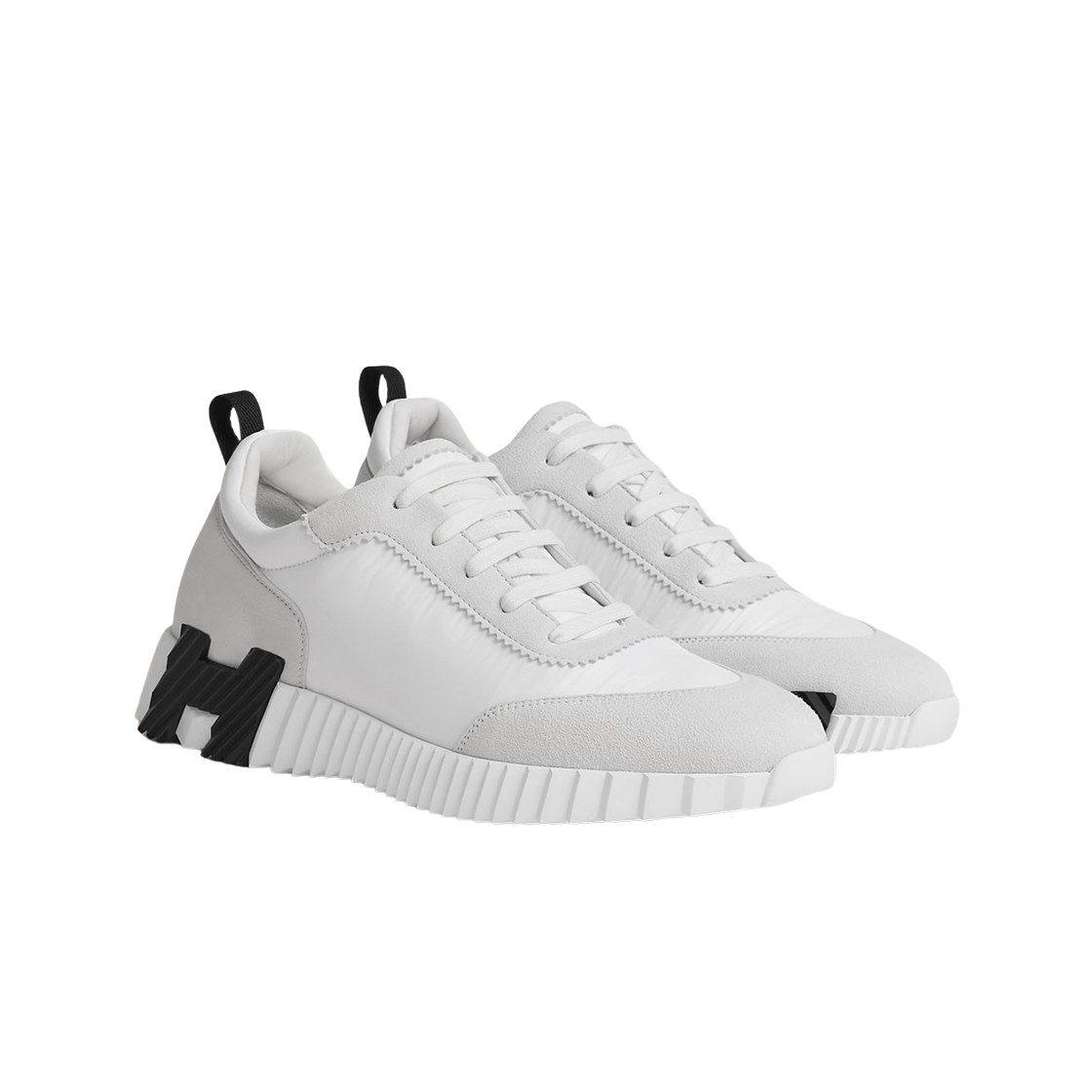 Hermes Bouncing Sneakers Parachute Fabric Suede Goatskin & Blanc