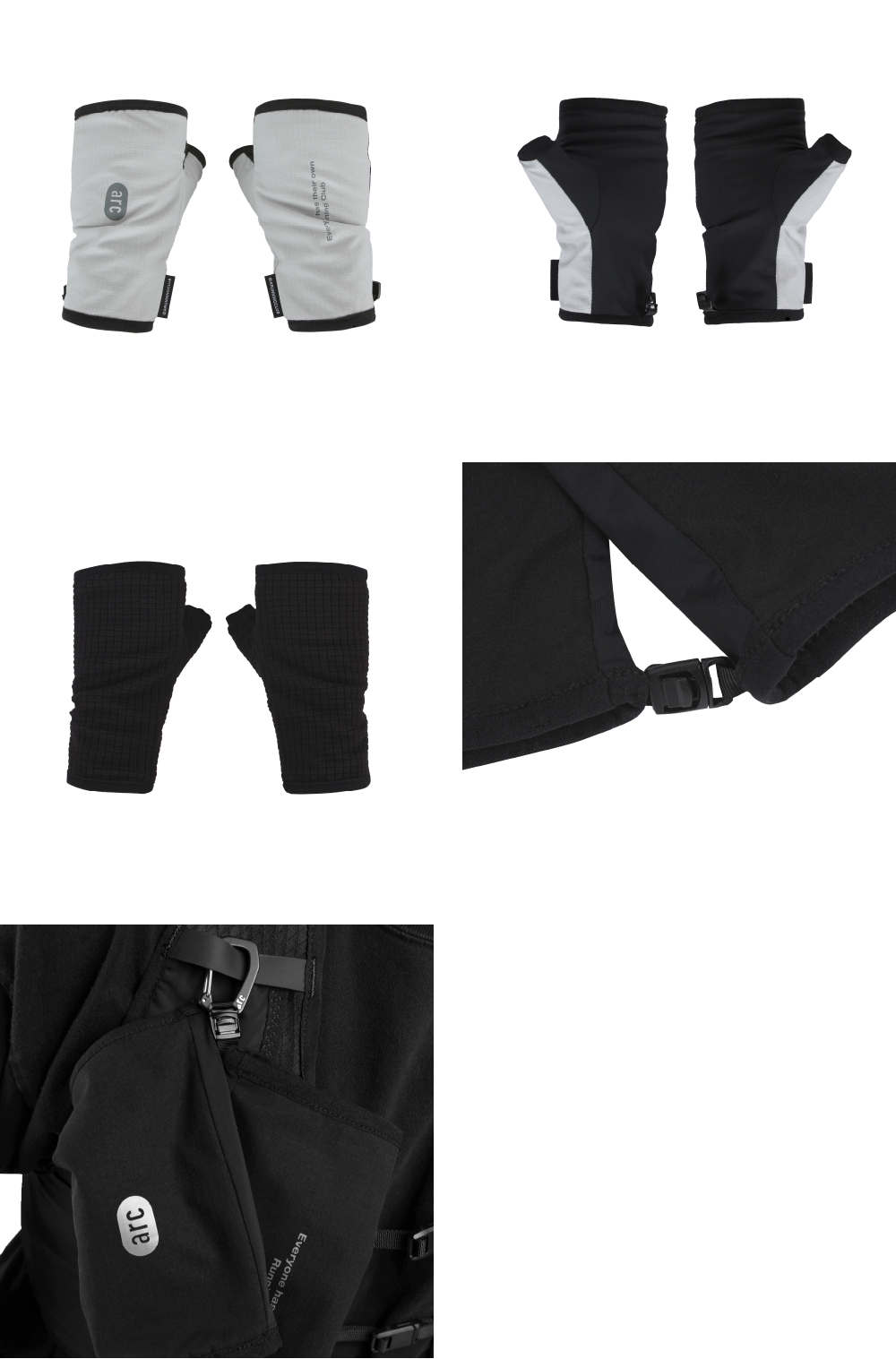 손가락이 자유로운 핑거리스 타입의 장갑은 주먹을 감싸주어 손바닥 중심부를 따뜻하게 해줍니다. 아웃도어 액티비티나 도심 트레일 러닝 시 적절한 보온성을 제공하면서도 활동성을 보장해줍니다. Fingerless Design – 손가락이 자유로운 핑거리스 타입 디자인 Connector Buckle – 두 짝을 하나로 이어주는 버클 Reversible Design – 뒤집어서 착용 가능한 리버서블 디자인 Stretchable Design – 세 가지 원단을 사용하여 적절한 활동성을 제공 Chain Stitch Sewing – 내구성이 강한 체인 미싱 Printing Details – ARC™ 로고 및 슬로건 프린팅