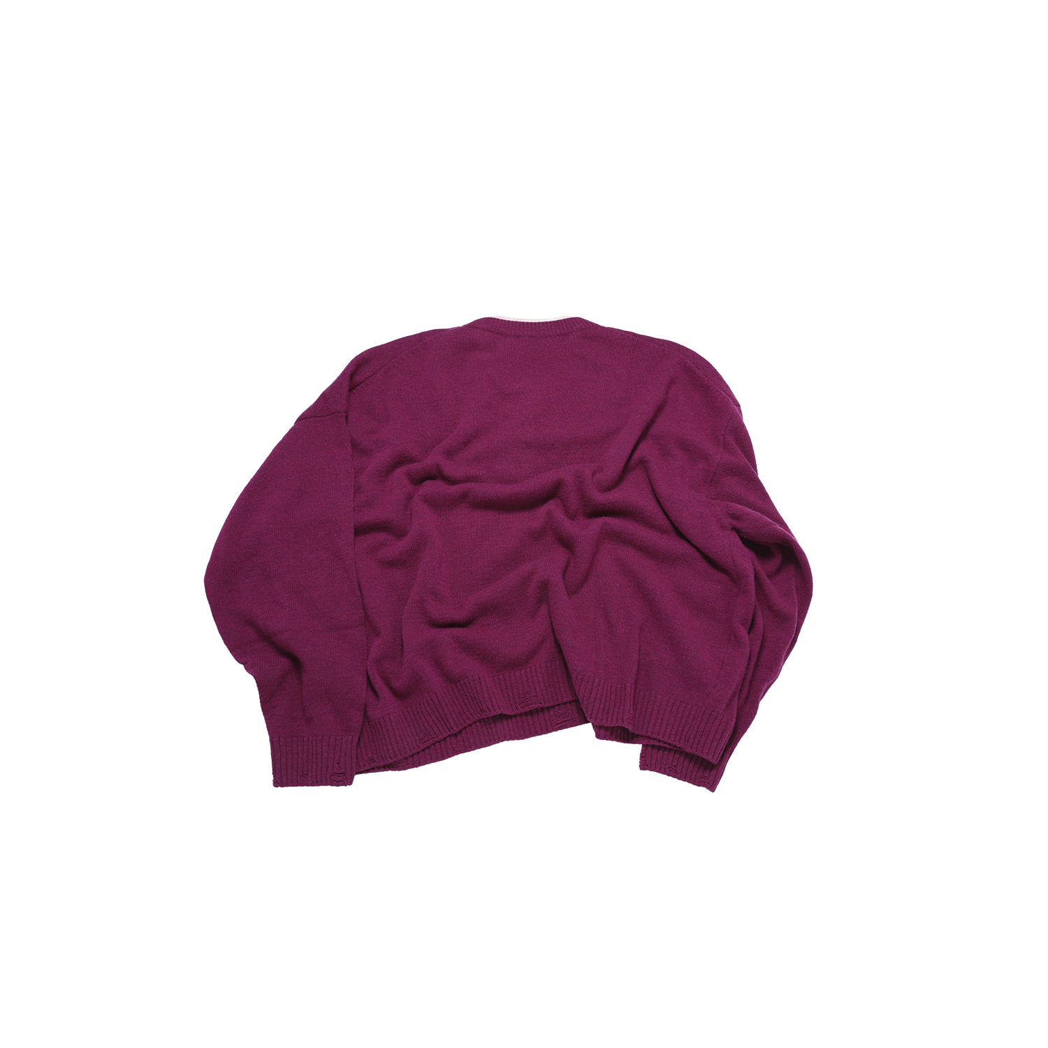 오버핏의 적당한 크롭핏 니트입니다. 이중넥으로 레이어드 효과와 소매와 밑단 디스 디테일이 매력적입니다.