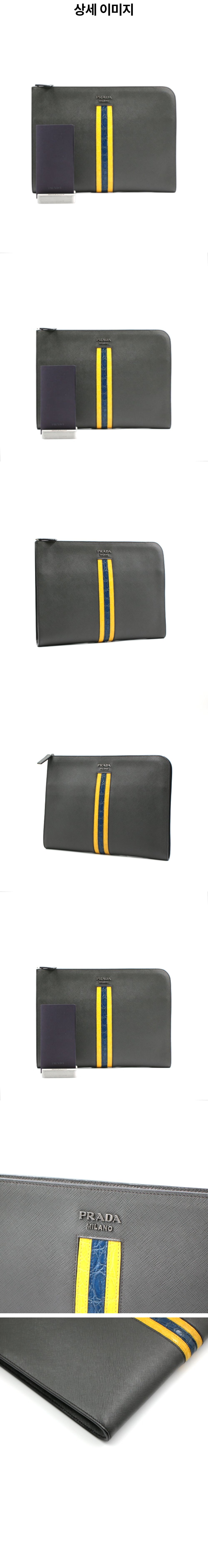 프라다 2VN003 사피아노 트래블 코치 사피아노 그레이 삼선 메탈 로고 남성 클러치백 aa18806