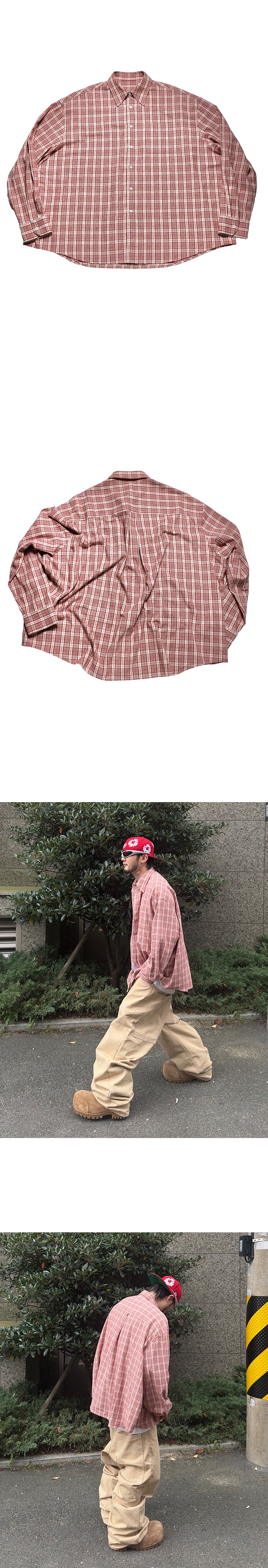 오버핏의 크롭 기장감에 레드 플란넬 셔츠. 단독으로도, 레이어드로도 스트릿 무드 완성