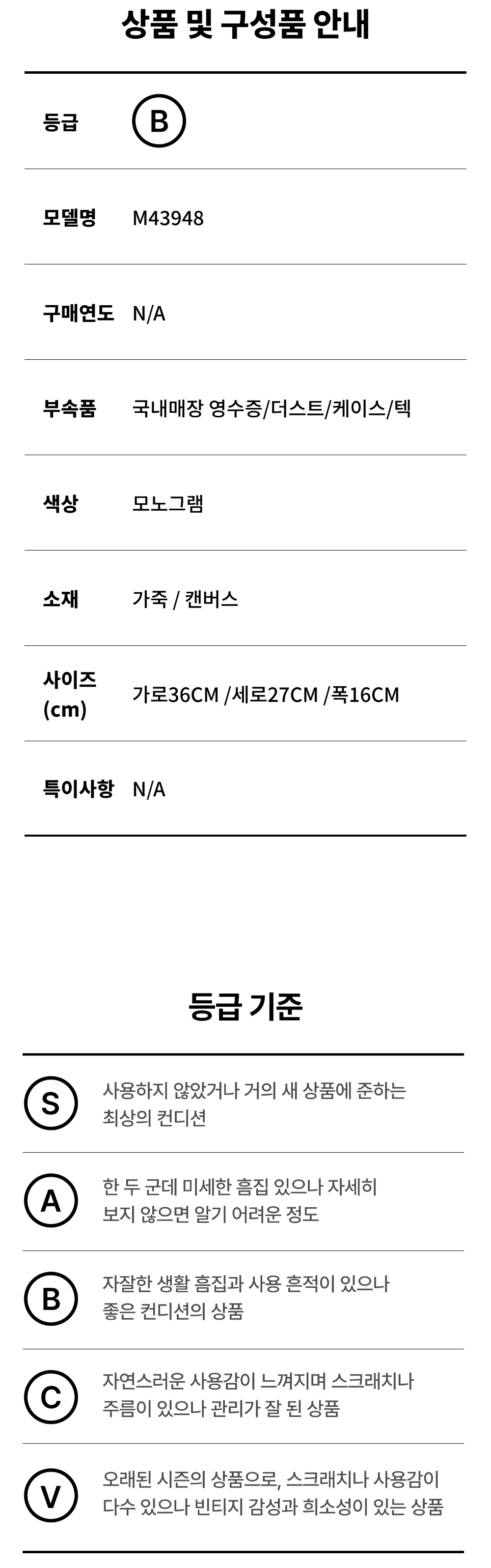 루이비통 M43948 모노그램 V 토트 MM 토트백 겸 숄더백 aa16600
