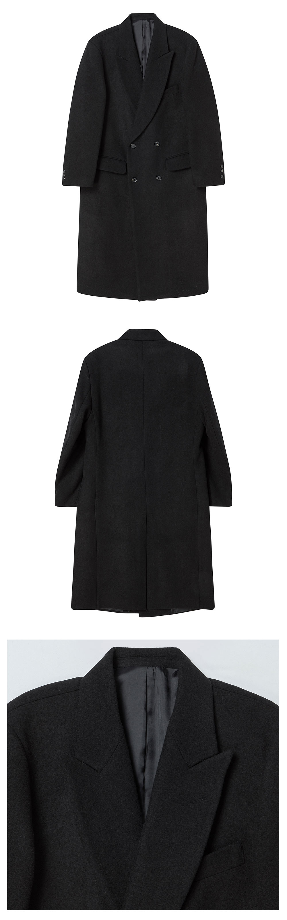 엔 아카이브 로맨틱 피크드 라펠 캐시미어 블렌드 더블 코트 블랙