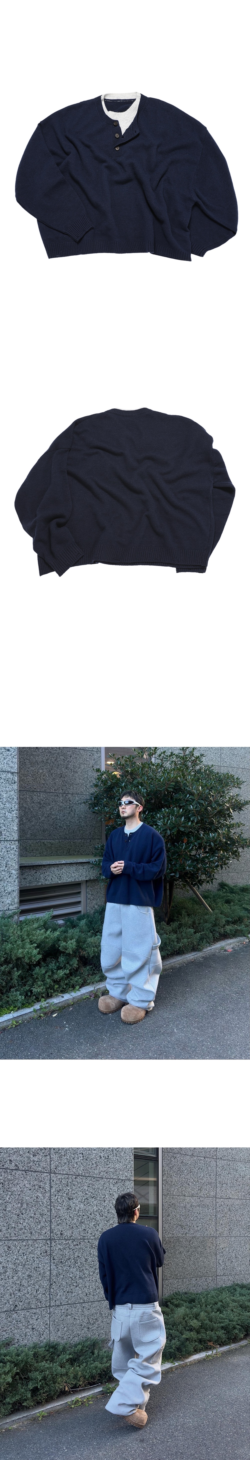 오버핏의 적당한 크롭핏 니트입니다. 이중넥으로 레이어드 효과와 소매와 밑단 디스 디테일이 매력적입니다.