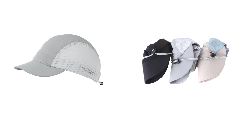 개인의 두상에 맞게 늘어나는 나일론 스판 소재로 유연한 핏과 편안한 착용감을 제공하는 러닝캡 EVA Light Brim – EVA 경량챙 Lightweight Running Cap – 경량 러닝모자 Flexible Shape – 유연한 소재의 러닝모자