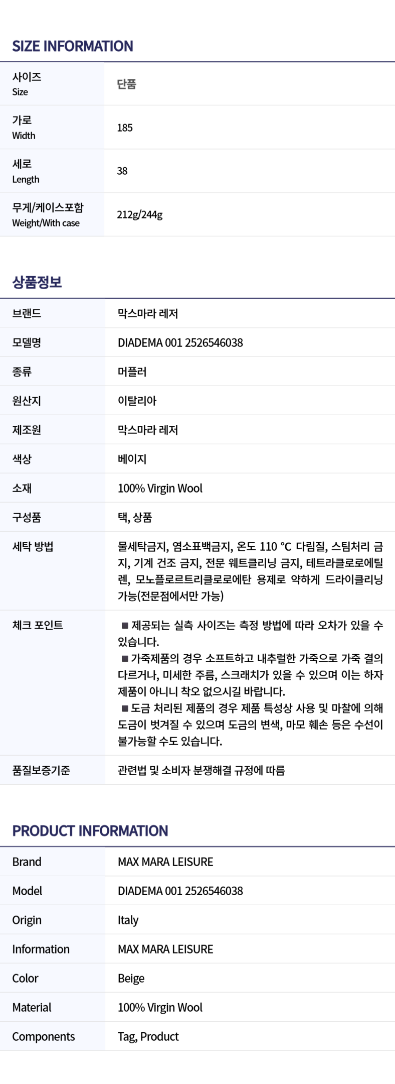 [13% 쿠폰] (W) Max Mara Leisuer Muffler Beige - 25FW