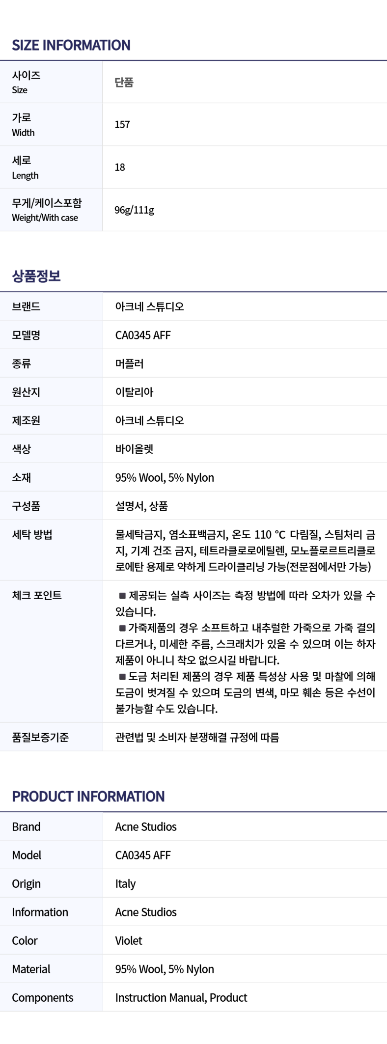 [13% 쿠폰] Acne Studios Check Slim Muffler Violet - 25FW