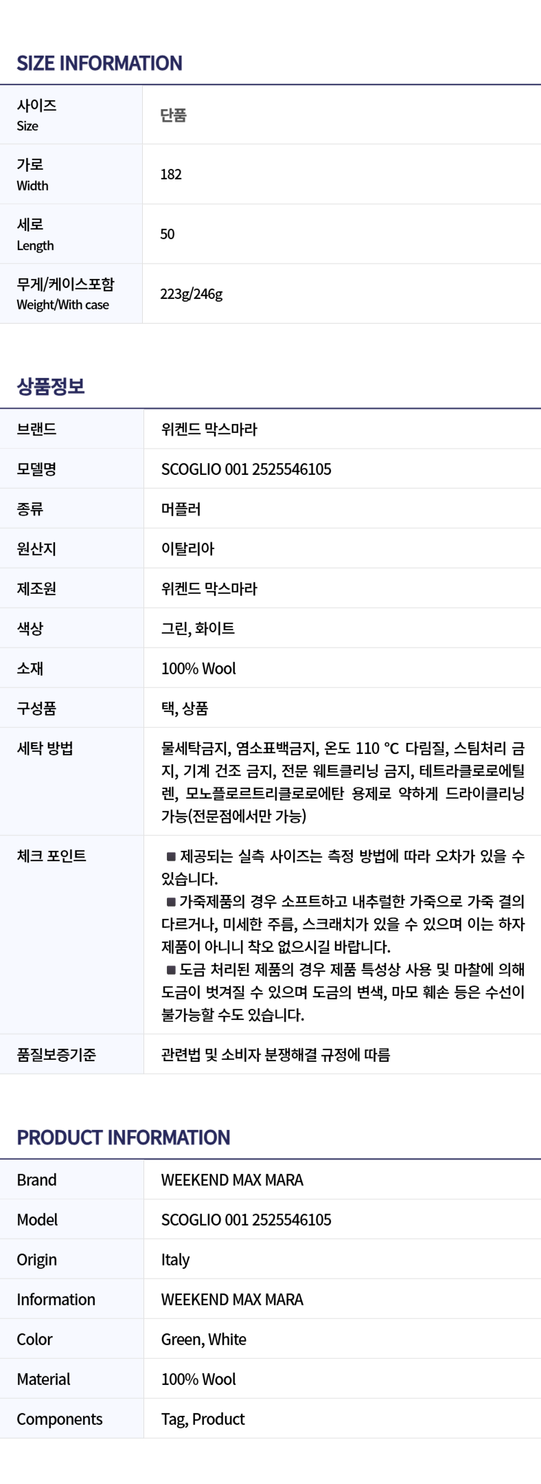 [13% 쿠폰] (W) 위켄드 막스마라 스코글리오 머플러 그린 화이트