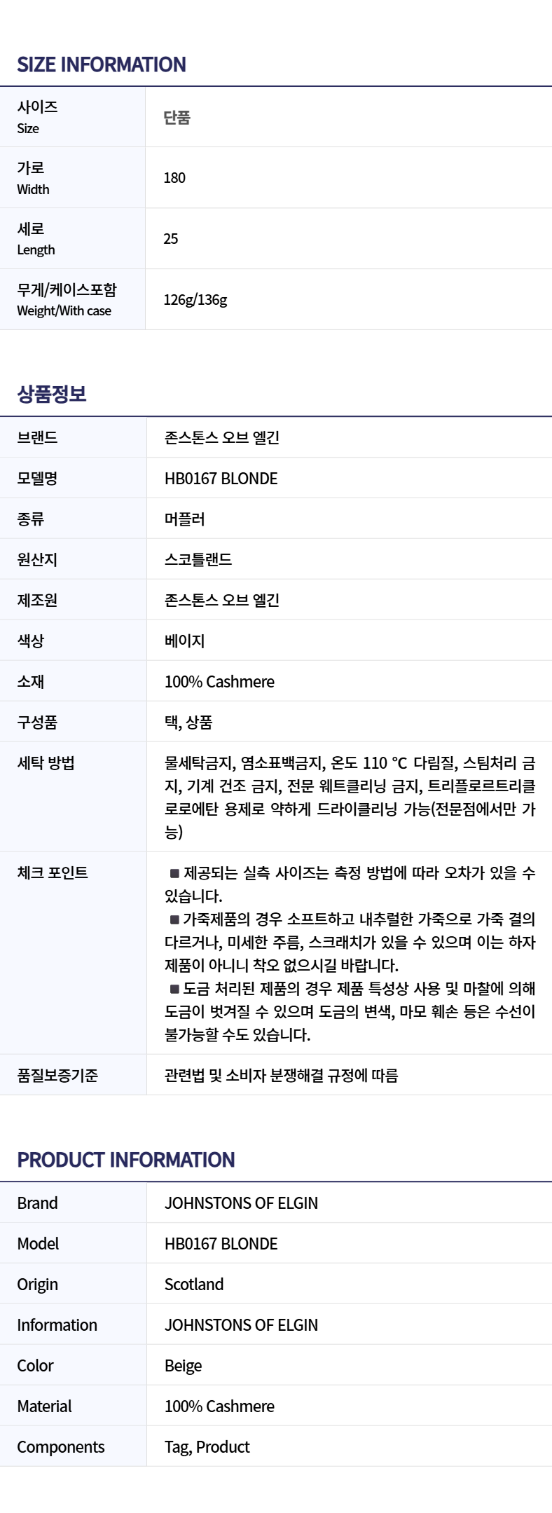 [13% 쿠폰] 존스톤스 오브 엘긴 캐시미어 머플러 베이지 - 25FW