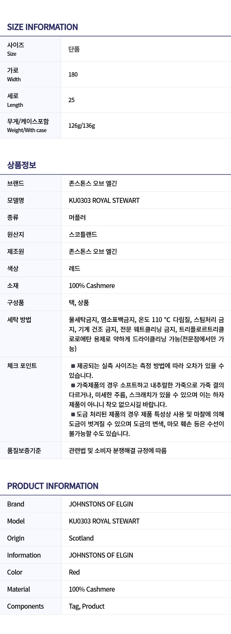 [13% 쿠폰] 존스톤스 오브 엘긴 타탄 캐시미어 머플러 레드 - 25FW