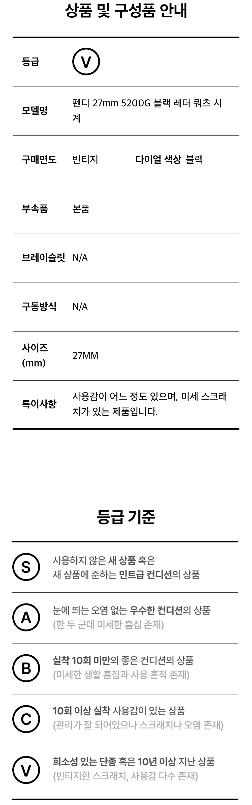펜디 27mm 5200G 블랙 레더 쿼츠 시계 A-B36980