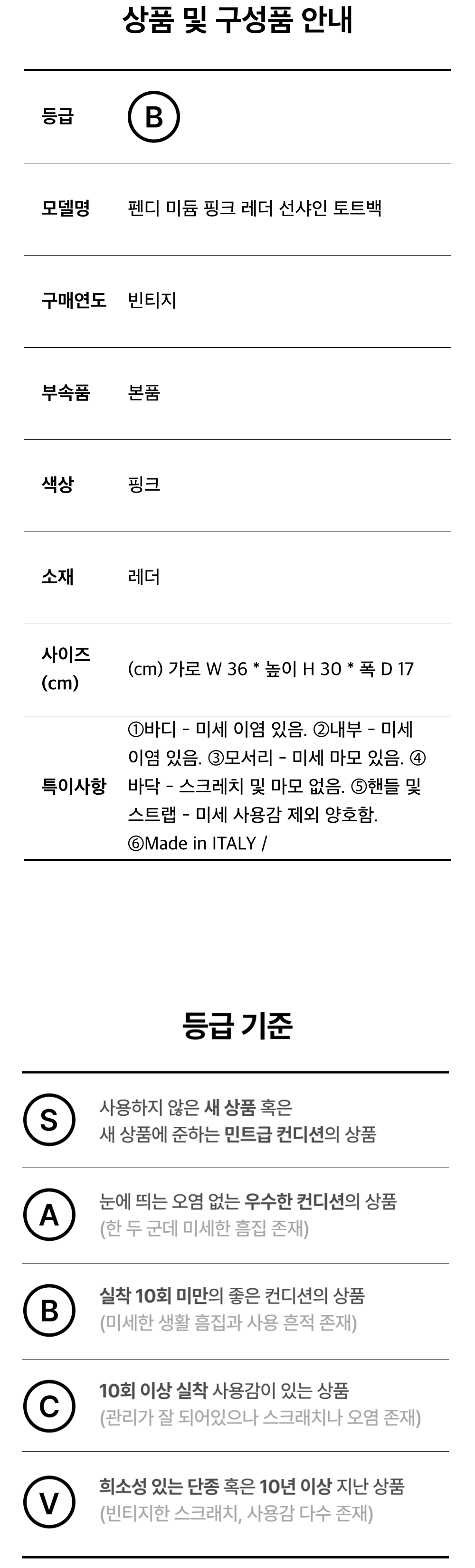 펜디 미듐 핑크 레더 선샤인 토트백 D-A40144
