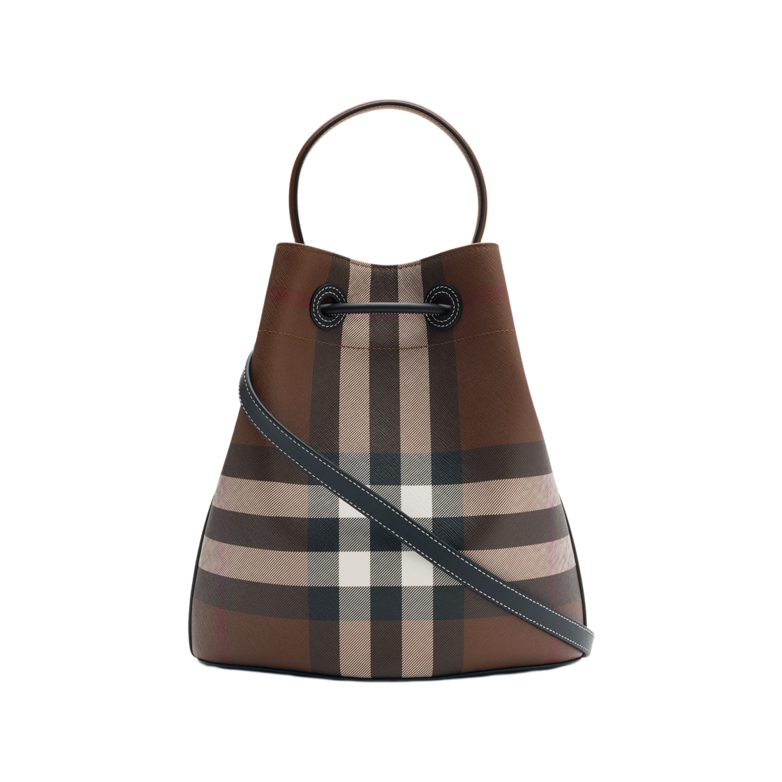 Burberry Small Check Bucket Bag Dark Birch Brown