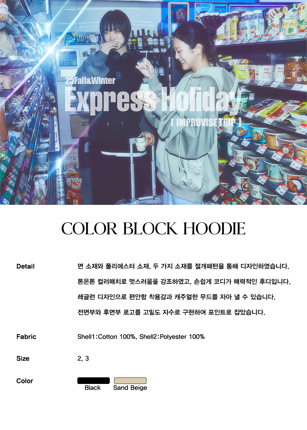 [트리플적립] Express Holiday Color Block Hoodie Sand Beige