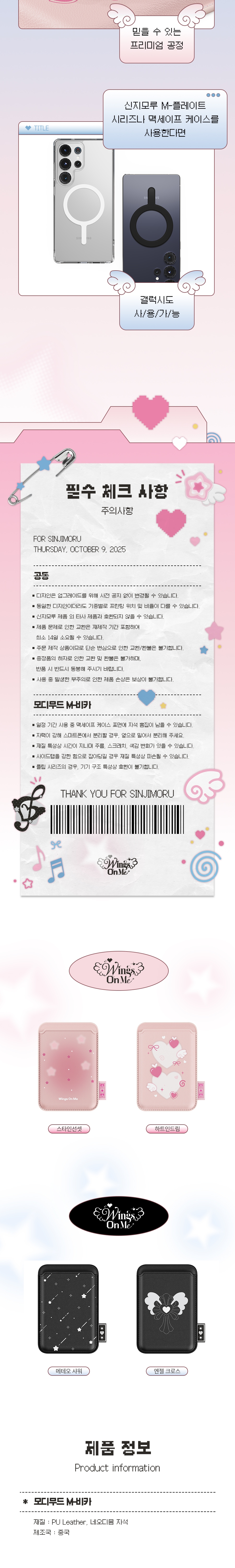 신지모루 x 모디무드 맥세이프 카드지갑 레더 3장 수납 케이스 하트인드림