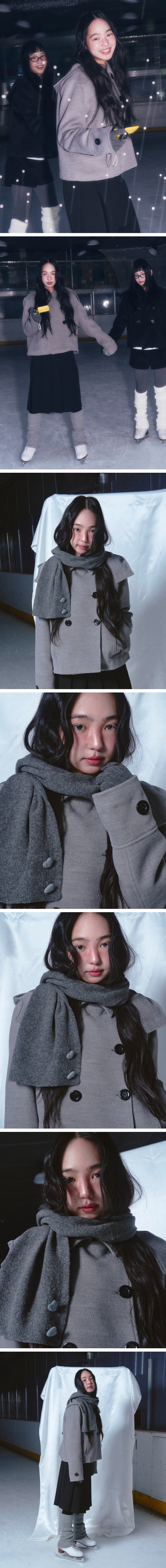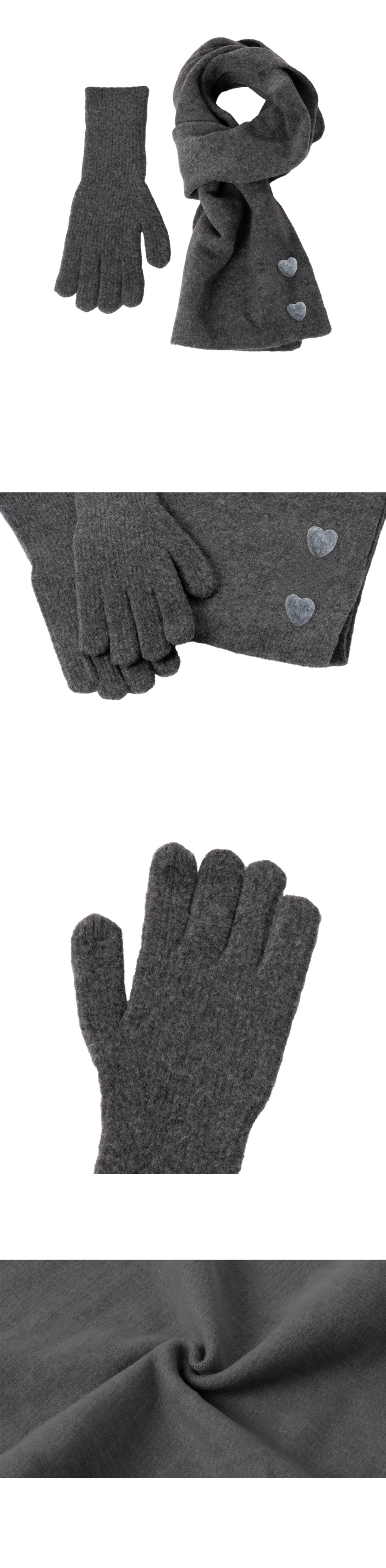 로긴 앤 로지 하트 버튼 머플러 글러브 세트 차콜