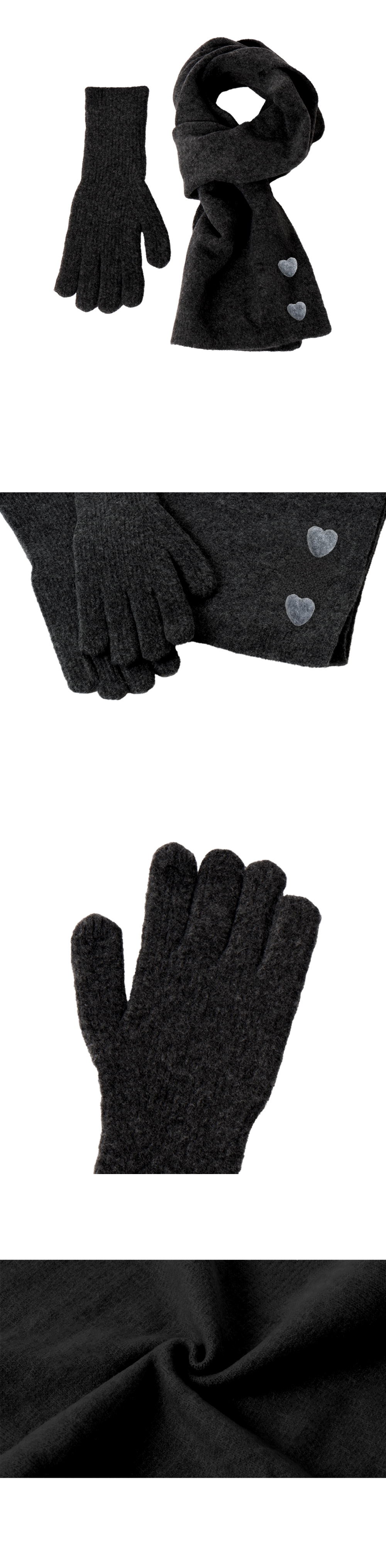 로긴 앤 로지 하트 버튼 머플러 글러브 세트 블랙