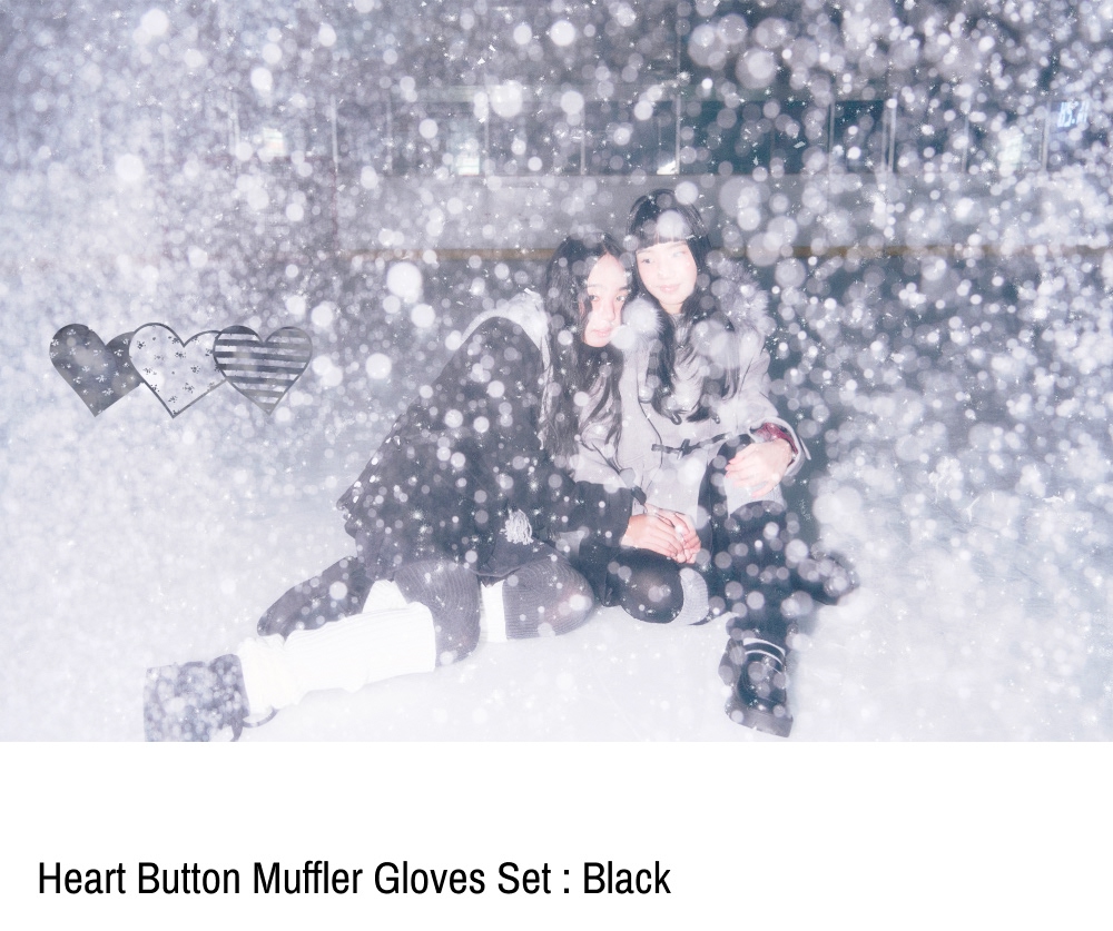 Rogin N Rosie Heart Button Muffler Gloves Set Black