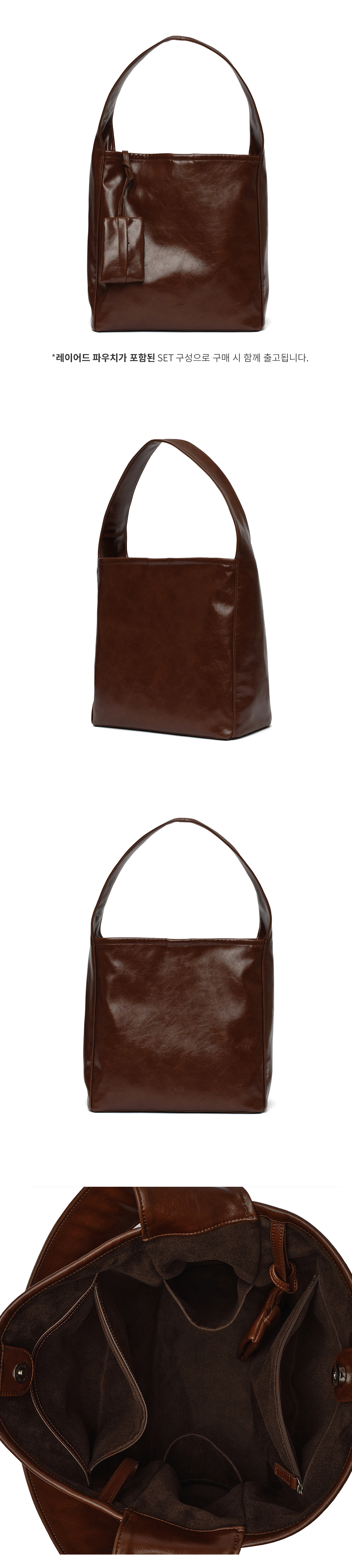 포테 0007 레이어드 파우치 호보 백 레더브라운