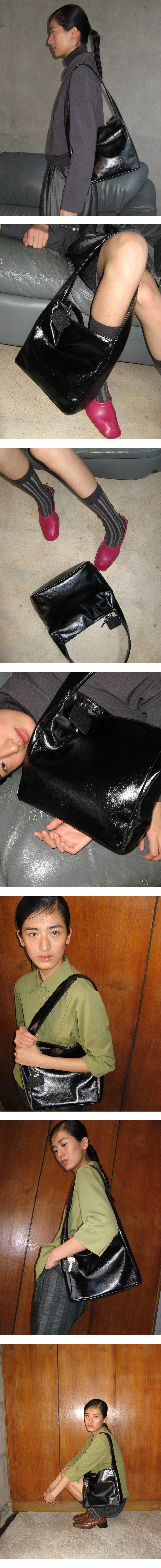 POTE 0008 Square Shoulder Bag Leather Black