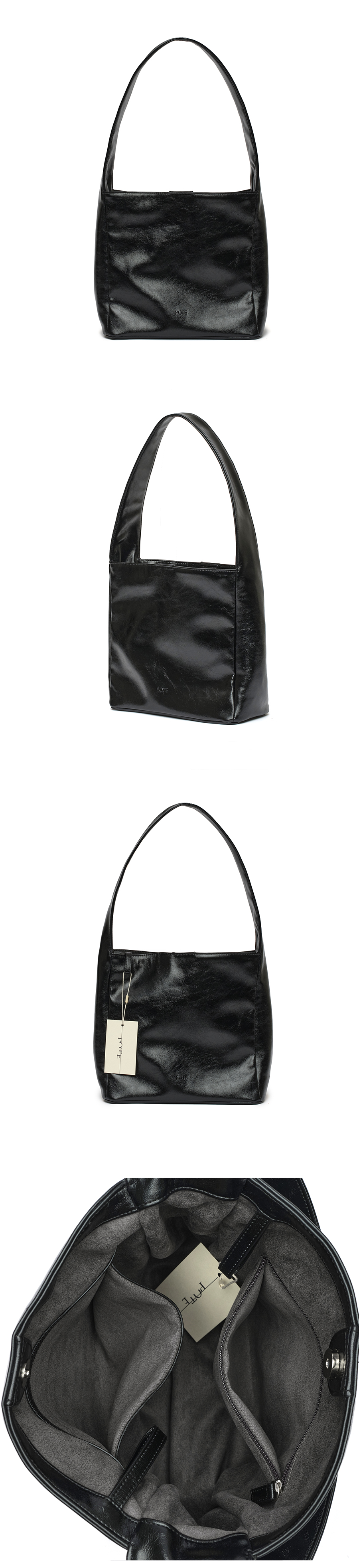 포테 0008 스퀘어 숄더백 레더블랙