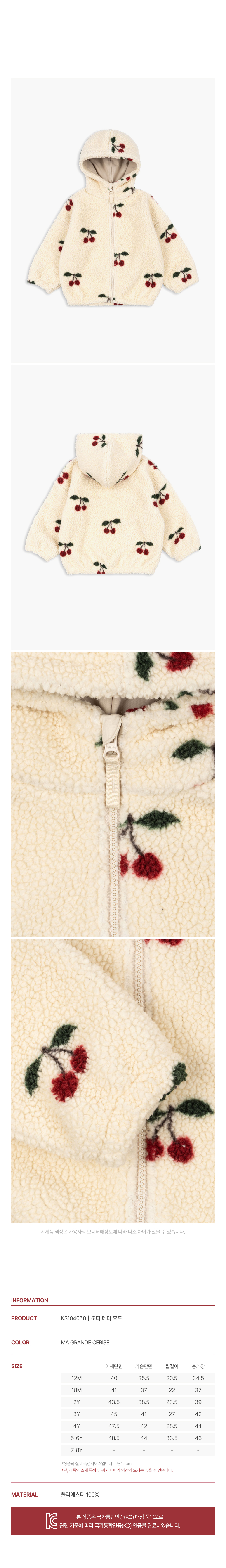 국내공식 콩제슬래드 조디 테디 후드 체리