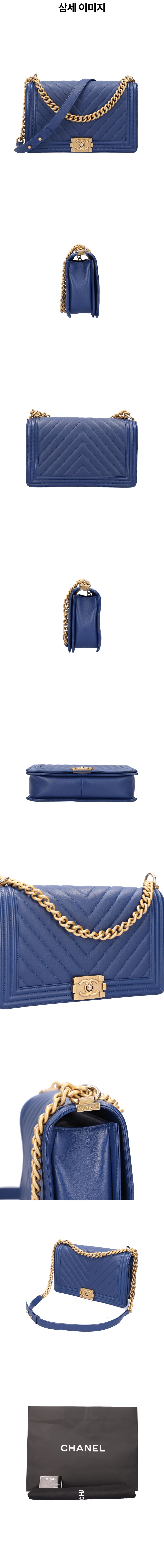 샤넬 보이 샤넬 쉐브론 플랩백 카프스킨 블루 금장