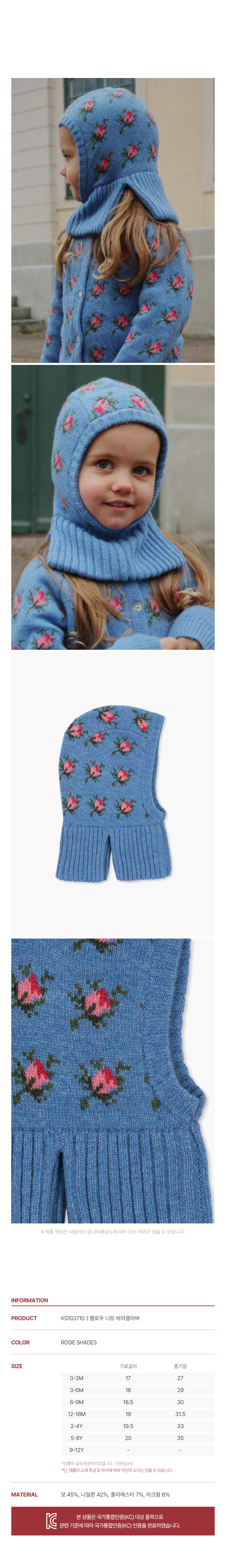 국내공식 콩제슬래드 벨로우 니트 바라클라바 로지