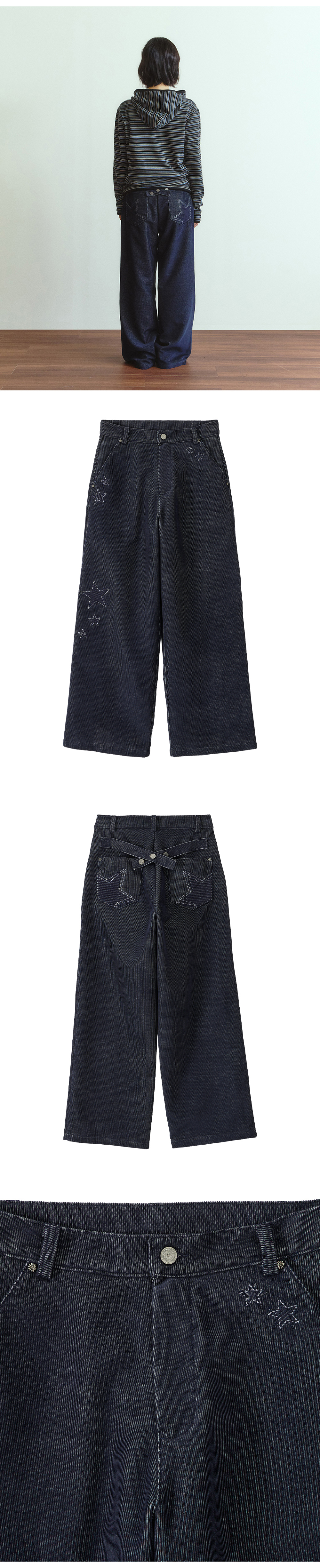 단델 스타 아플리케 코듀로이 팬츠 인디고