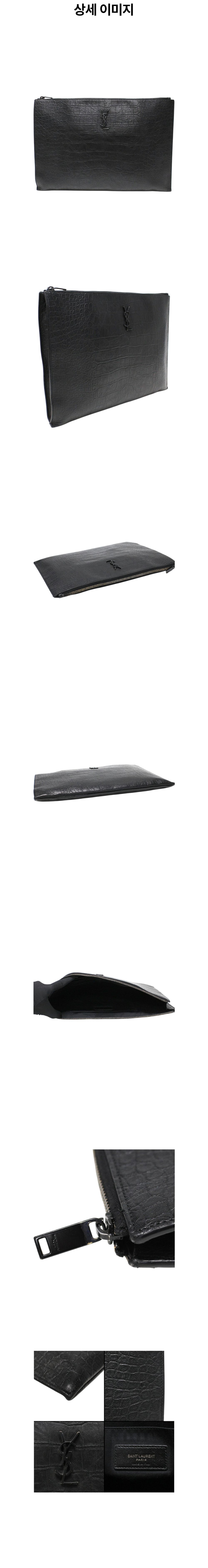 생로랑 485628 블랙 크로커다일 패턴 모노그램 다큐먼트 홀더 클러치